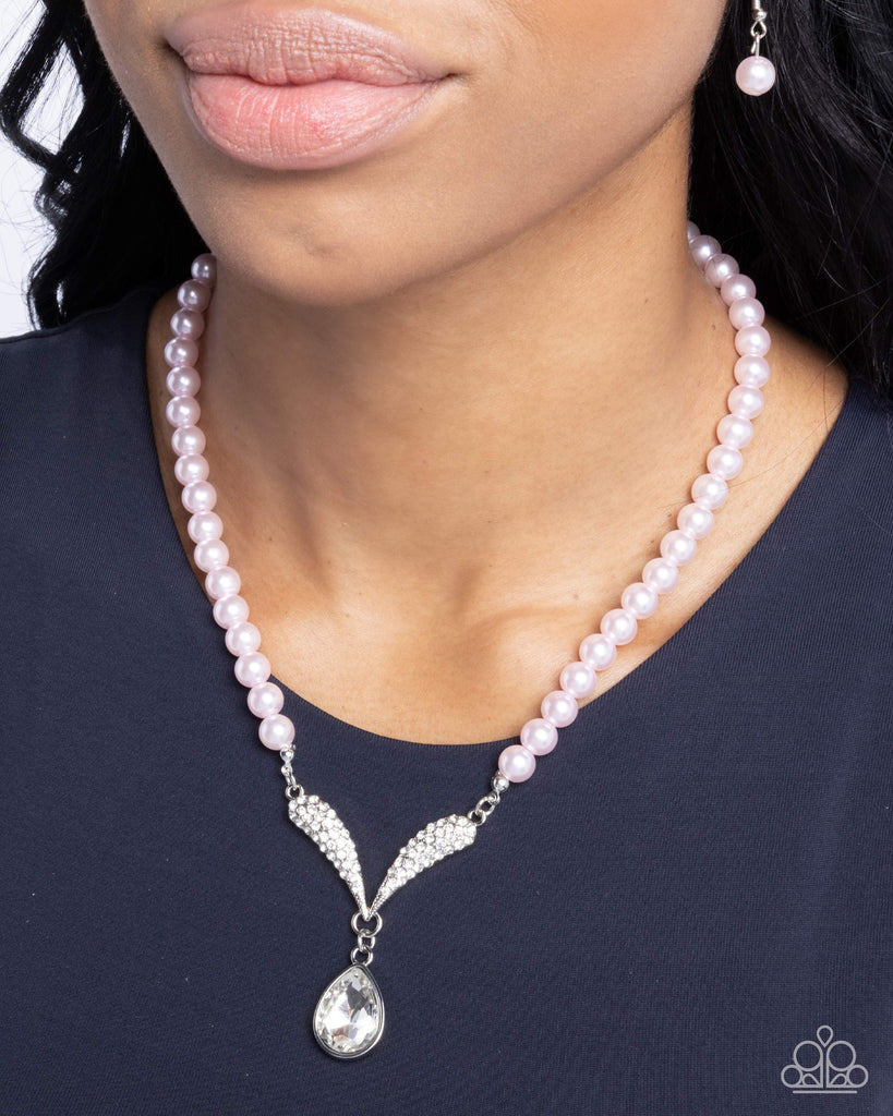 Infused along an invisible string, a collection of baby pink pearls lead the eye to a white rhinestone-embellished mermaid tail fitting. A white teardrop gem cascades from the mermaid fitting for additional shimmer and detail. Features an adjustable clasp closure.