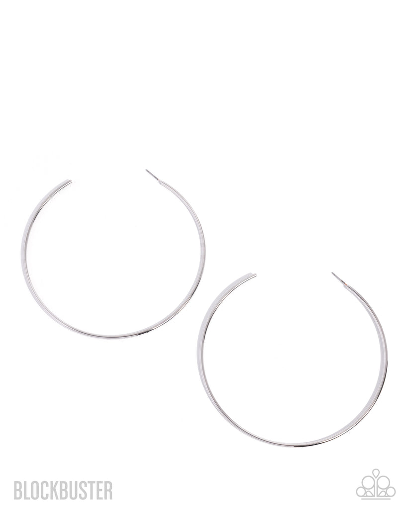 A classic silver bar curls into an outrageously oversized hoop for a trendsetting look. Earring attaches to a standard post fitting. Hoop measures approximately 4" in diameter.