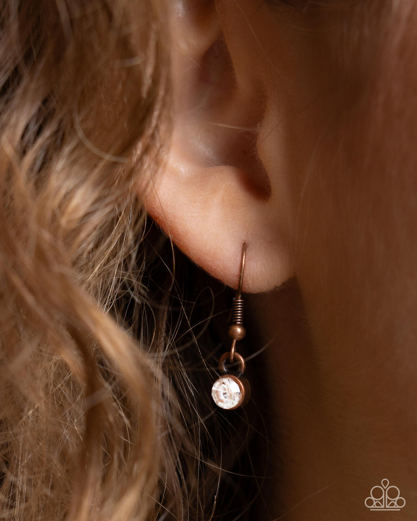 Gliding along a dainty copper chain, a copper sunburst pendant, embellished with gold foil against a blue and peach backdrop creates a stunning sunny statement. Features an adjustable clasp closure. Sold as one individual necklace. Includes one pair of matching earrings. Gliding along a dainty copper chain, a copper sunburst pendant, embellished with glistening white rhinestones creates a simply sunny statement. Features an adjustable clasp closure. Sold as one individual necklace. Includes one pair of matching earrings.