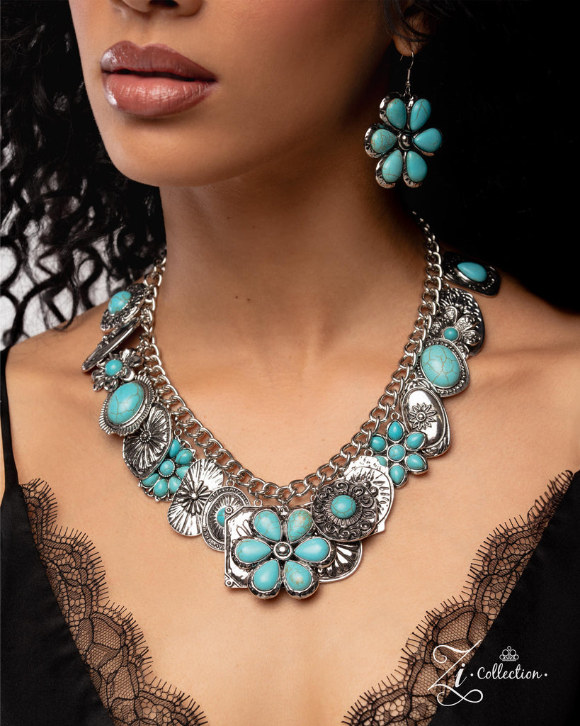 Whimsically patterned silver charms in varying cuts and sizes stamped in textured, intricate filigree dance along a thick silver chain around the neck, clustering into an authentic fringe. Additional silver floral and white rhinestone-dusted charms in varying sizes are sprinkled along the chain, adding texture and depth, further highlighting the spectrum of textures at play. Features an adjustable clasp closure. As the stone elements in this piece are natural, some color variation is normal.