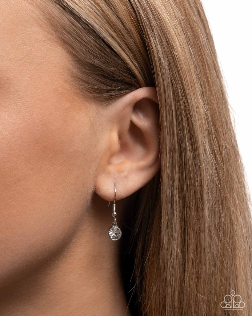 A playful arrangement of silver charms, including a textured flower, an enchanting bunny, a spring chick, a silver bow, and a lustrous pearl-like bead, dangles from a sleek silver chain. A white gem encased in a dotted silver frame dangles from the top of the chain. The whimsical design adds a touch of charm to any look. Features an adjustable clasp closure.