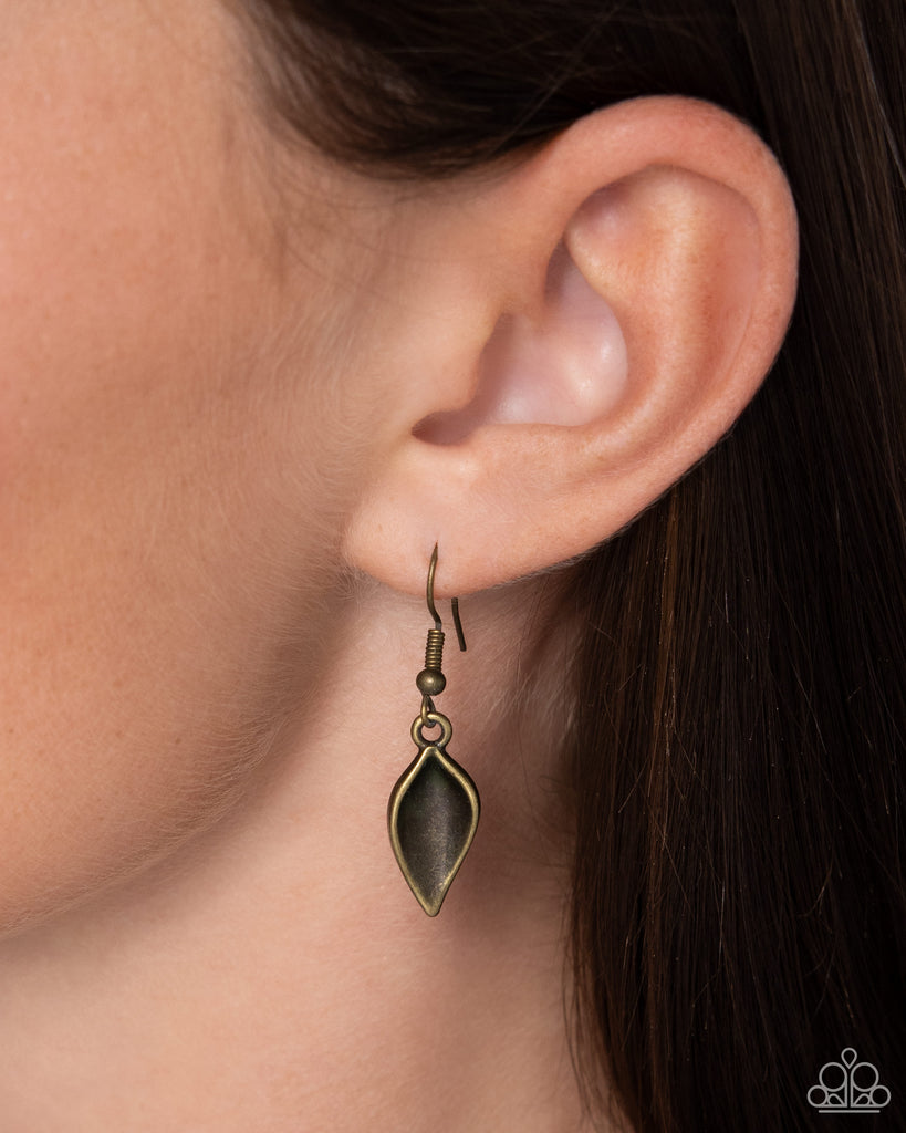 A rustic collection of leafy brass frames gently fold around their golden topaz rhinestone centerpieces as they delicately connect into a swaying pendant, resulting in a radiant shimmer below the collar. Features an adjustable clasp closure.