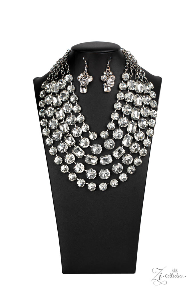 Featuring round and emerald style cuts, row after row of dramatically oversized white rhinestones delicately link into blinding layers below the collar. Featuring sleek silver fittings, each rhinestone in this megawatt mashup demands attention. Features an adjustable clasp closure.