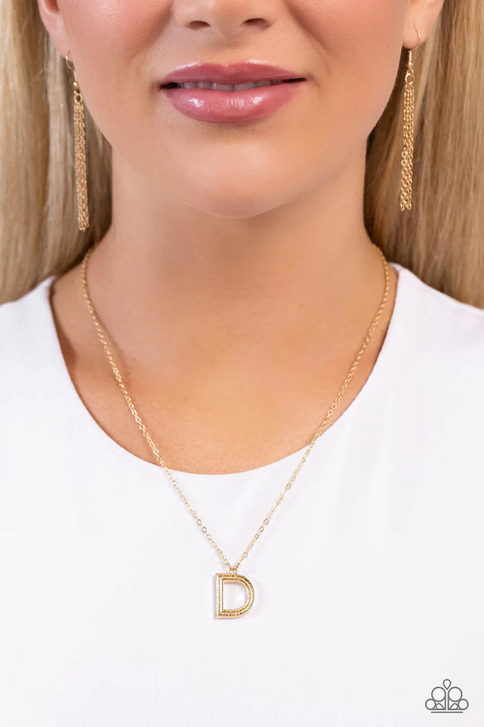 Etched in linear texture, a gold letter "D" hovers below the collar from a dainty gold chain, for a sentimentally simple design. Features an adjustable clasp closure.