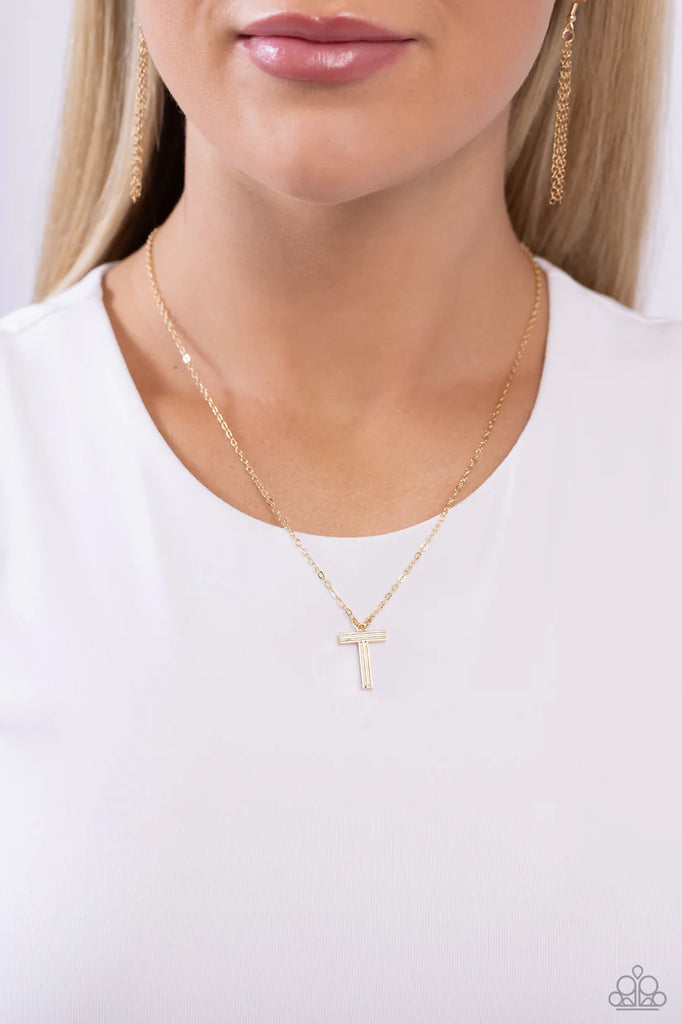 Etched in linear texture, a gold letter "T" hovers below the collar from a dainty gold chain, for a sentimentally simple design. Features an adjustable clasp closure.