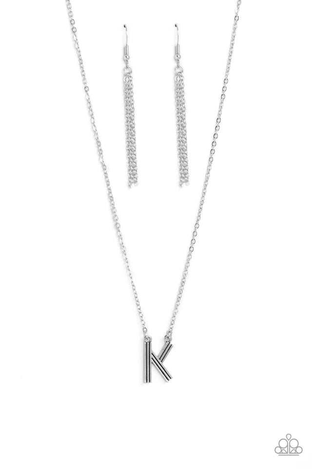 Etched in linear texture, a silver letter "K" hovers below the collar from a dainty silver chain, for a sentimentally simple design. Features an adjustable clasp closure.