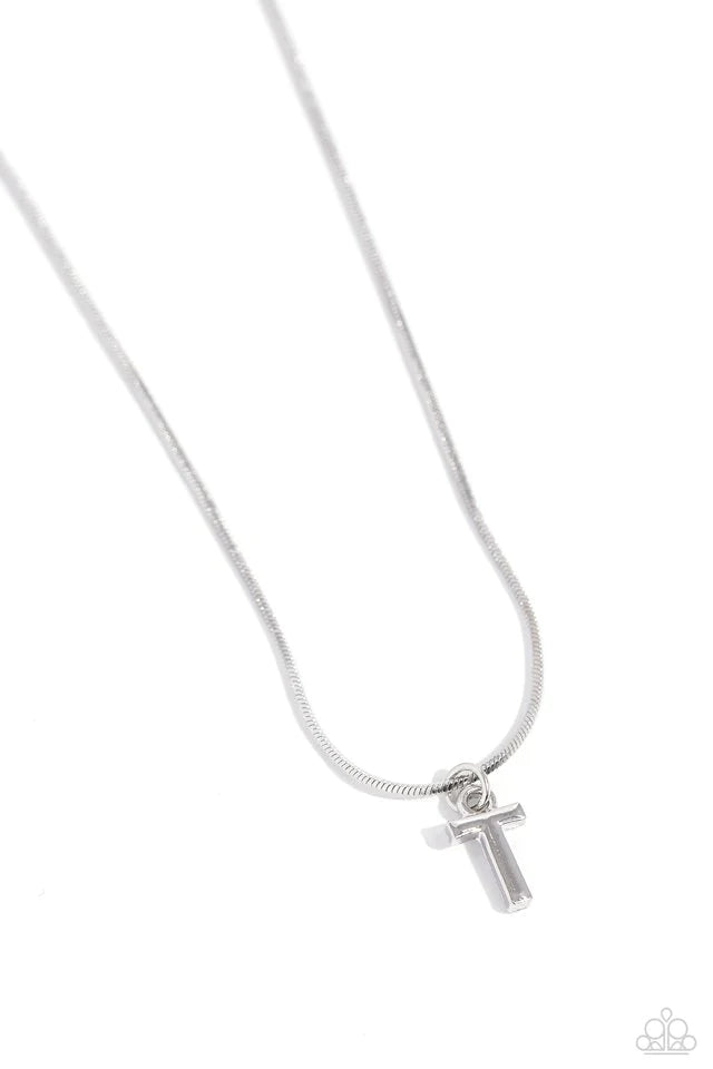 Featuring a sleek finish, a silver letter "T" dances below the collar from a dainty silver snake chain, for a sentimentally simple design.