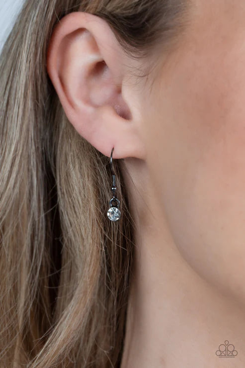 Shimmery strands of multi-sized white rhinestones majestically morph into gunmetal framed layers along the collar for a sparkling statement piece. Features an adjustable clasp closure.