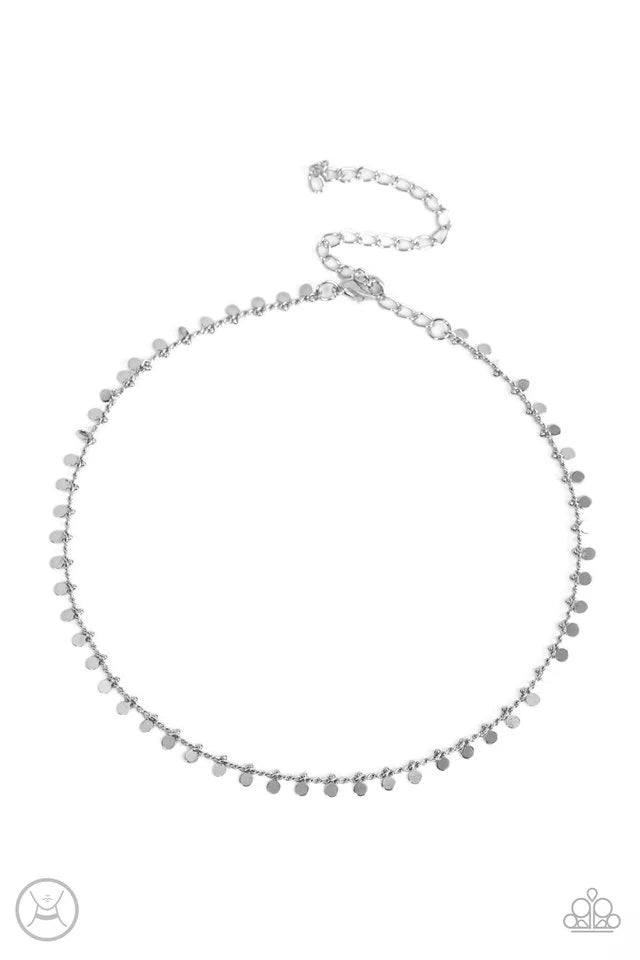 Featuring beaded fittings, a dainty collection of shiny silver discs glisten from the bottom of a dainty shiny silver chain around the neck for a minimalist inspired style. Features an adjustable clasp closure.