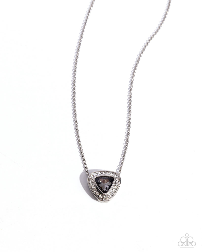 Bordered in glassy white rhinestones, a smoky triangular cut gem sparkles at the bottom of a dainty silver chain for a timeless twinkle below the collar. Features an adjustable clasp closure.