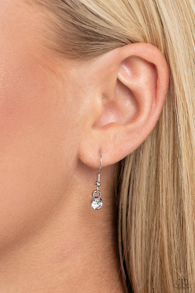 Featuring a white gem ring, a silver hoop is threaded through the center of a thick silver fitting. The dizzying pendant swings from the bottom of a lengthened silver snake chain for a dramatic, show-stopping look. Features an adjustable clasp closure.